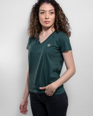 DANTE Women's V Collar Stain-Resistant T-Shirt – Emerald: Ultimate Freshness and Perfect Fit